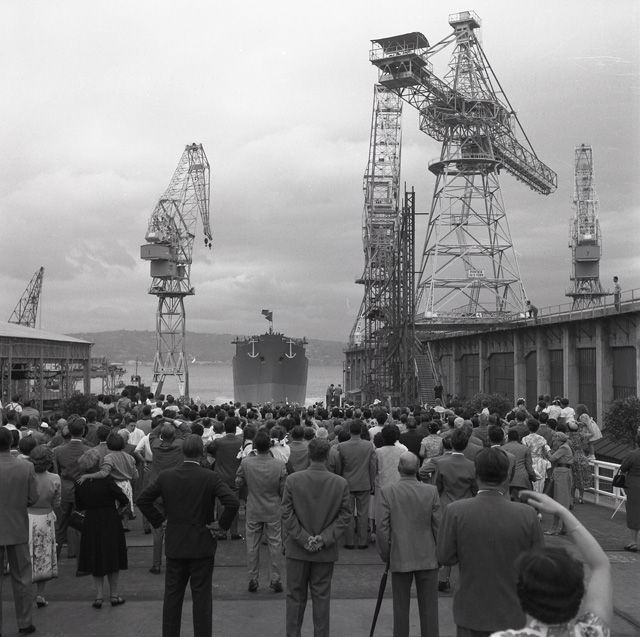 I Cantieri Riuniti dell'Adriatico costruiscono per conto del Lloyd Triestino la motonave da carico Aquileia. La contessa Franca de Courten, moglie dell'ammiraglio de Courten, Presidente del Lloyd Triestino, è la madrina. Il vescovo monsignor Santin benedirà la nave prima del varo che avviene al Cantiere San Marco, domenica 22 agosto 1954 alle ore 10. Partecipa all'evento anche una delegazione del Comune di Aquileia. Dopo il varo, le autorità intervengono a un lussuoso e signorile rinfresco offerto dalla presidenza dei cantieri negli ampi saloni dell'Albergo Excelsior.