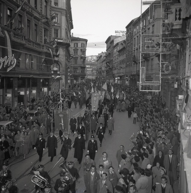 Manifestazione di italianità e discorso del sindaco Gianni Bartoli dal municipio