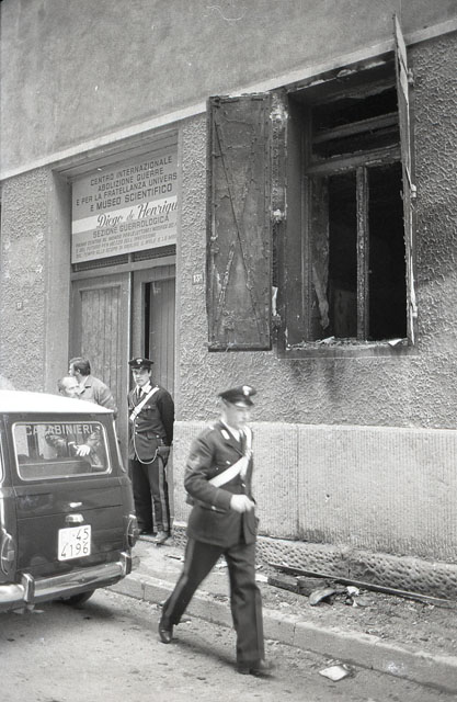 Carabinieri davanti al Museo de Henriquez incendiato