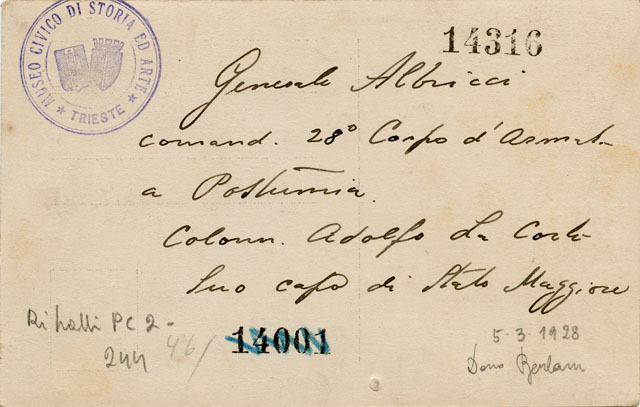 Generale Albricci comandante 28° Corpo d'Armata a Postumia. Colonnello Adolfo La Corte Suo capo di Stato Maggiore