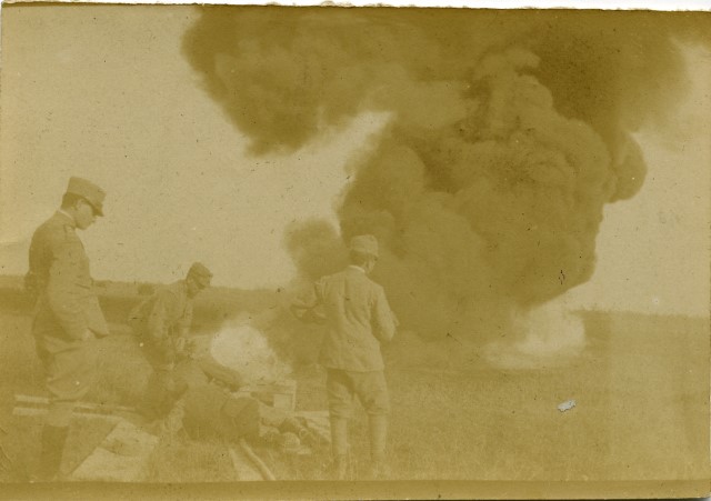 Esplosione di una granata durante la prima guerra mondiale.
