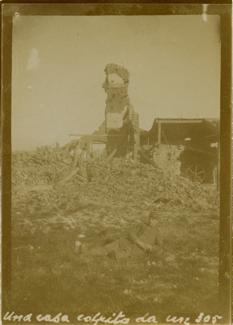 Rovine di una casa colpita da un obice 305 mm.