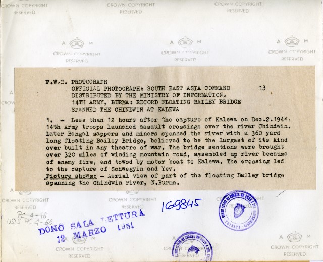 4TH ARMY, BURMA: RECORD FLOATING BAILEY BRIDGE SPANNED THE CHINDWIN AT KALEWA