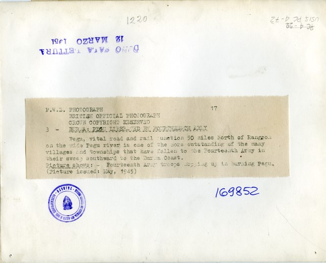 Guerra mondiale 1939-1945 - Partecipazione dei Soldati inglesi - Birmania