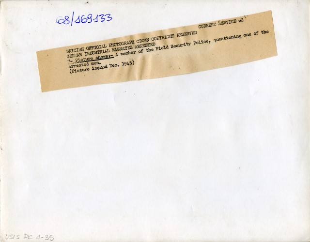 Soldato inglese della Field Security Police interroga uno degli industriali arrestati a Dortmund, nella notte tra il 30 novembre e l'1 dicembre 1945
