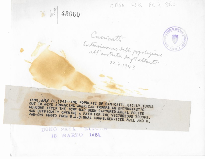 Il 12 luglio 1943, in seguito a un bombardamento alleato, le truppe tedesche iniziarono a ritirarsi dalla città di Canicattì, in provincia di Agrigento. Quel giorno si consumò la prima strage di civili compiuta dai nazisti sul suolo italiano. Gli abitanti, avendo appreso dello sbarco alleato avvenuto due giorni prima, il 10 luglio, credettero che i mezzi corazzati in arrivo fossero americani e, convinti che la guerra fosse ormai finita, corsero loro incontro festanti. Ma si trattava, in realtà, di reparti tedeschi della Panzergrenadier Division "Sizilien", in ritirata. Temendo un’imboscata o in preda al panico, i soldati tedeschi aprirono il fuoco sulla folla, uccidendo sei civili, tra cui due ragazzi di appena diciotto anni. Due giorni dopo, il 14 luglio, avvenne una seconda strage, stavolta ad opera delle truppe americane. In una fabbrica di olii e saponi, dove alcuni civili erano entrati per prendere beni abbandonati — un atto di saccheggio motivato dalla fame e dal caos del momento — il colonnello George McCaffrey, comandante delle forze statunitensi a Canicattì, ordinò di aprire il fuoco sulla folla. Il bilancio fu di almeno sei morti, ma alcuni testimoni sostengono che il numero delle vittime sia stato più alto.