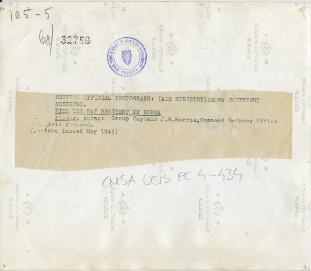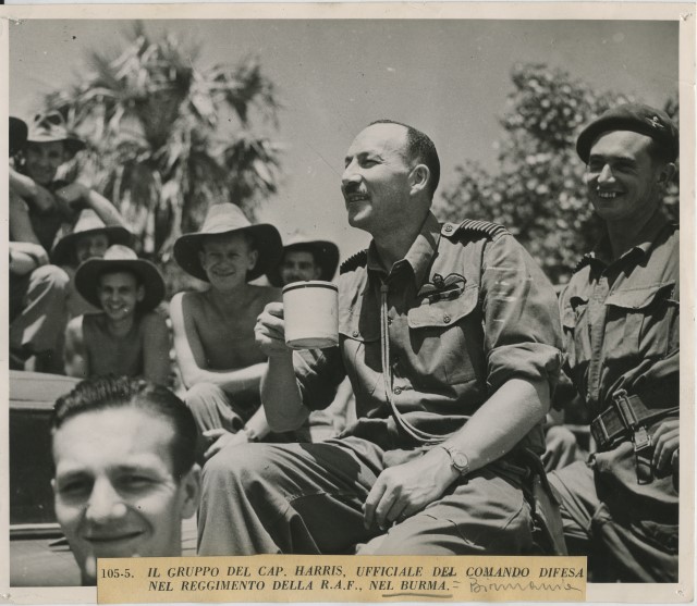 Il comandante J.H. Harris, in un momento di pausa, assieme ai soldati di un reggimento della RAF (Royal Air Force) in Birmania
