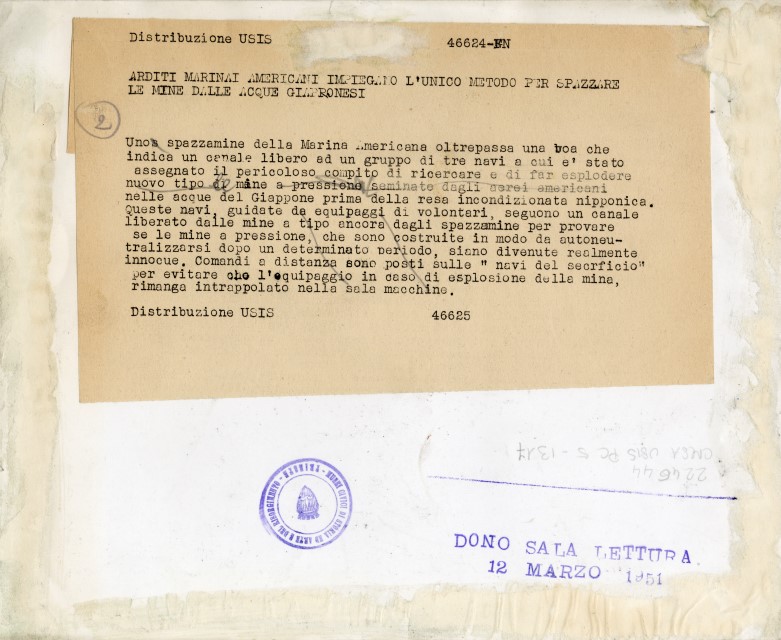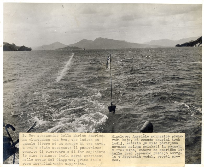Una nave americana ricerca e fa esplodere le mine sparse in acque giapponesi dopo la resa firmata il 2 settembre 1945.