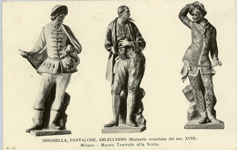 Brighella, Pantalone, Arlecchino (Statuette veneziane del sec.XVIII). Milano - Museo Teatrale alla Scala