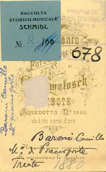 Proprietà Ente pubblico territoriale; Civico museo teatrale C. Schmidl