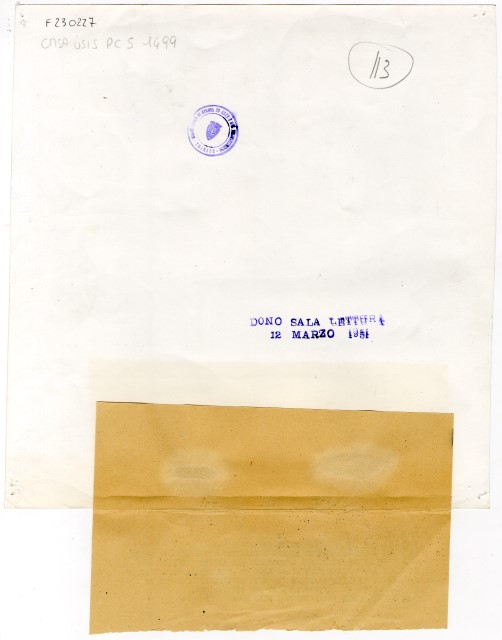 Proprietà Ente pubblico territoriale; Civici musei di Storia ed Arte; donazione; Sala di lettura americana; 1951/03/12