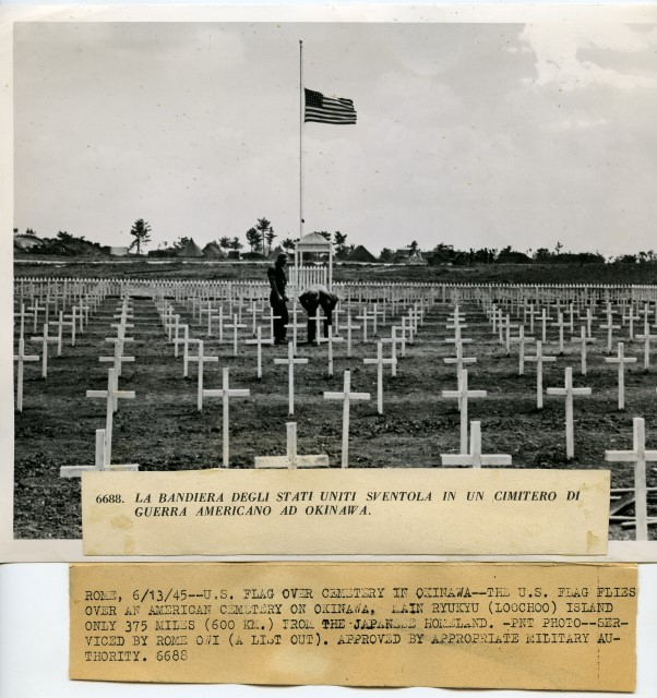 Cimitero militare americano sull'isola di Okinawa, nel quale sventola la bandiera degli Stati Uniti.