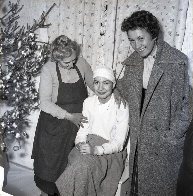 La giovane gradiscana Alessandra Fornasiero rientra da un viaggio a Stoccolma dove è stata operata dal professore Herbert Olivecrona. Con una sottoscrizione il Piccolo finanzia l'intervento che viene descritto nelle pagine del giornale. La documentazione fotografica utilizzata dal giornale è di Giornalfoto. Il servizio di Foto Omnia documenta anche il rientro a Gradisca.