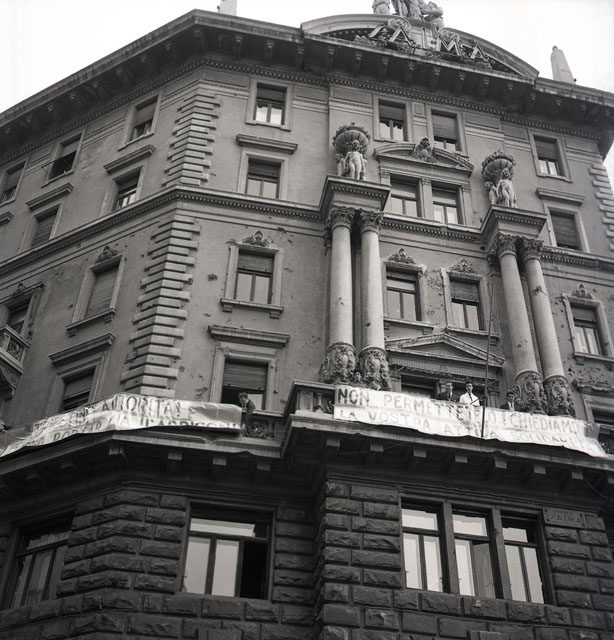 Sede Arrigoni via Carducci occupata (manifesti ai poggioli)