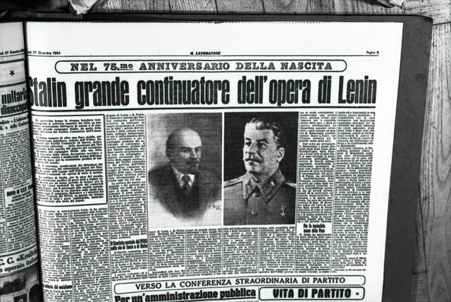 I negativi riproducono copertina e articolo su Stalin, da "Il Lavoratore"