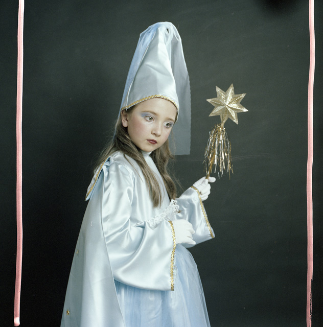 Bambina in costume di carnevale in studio