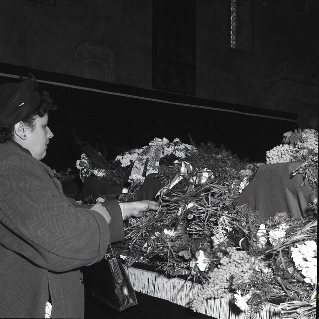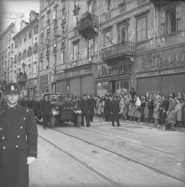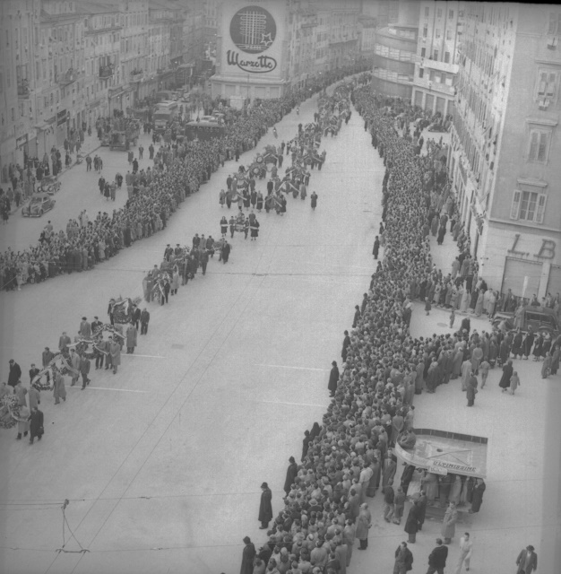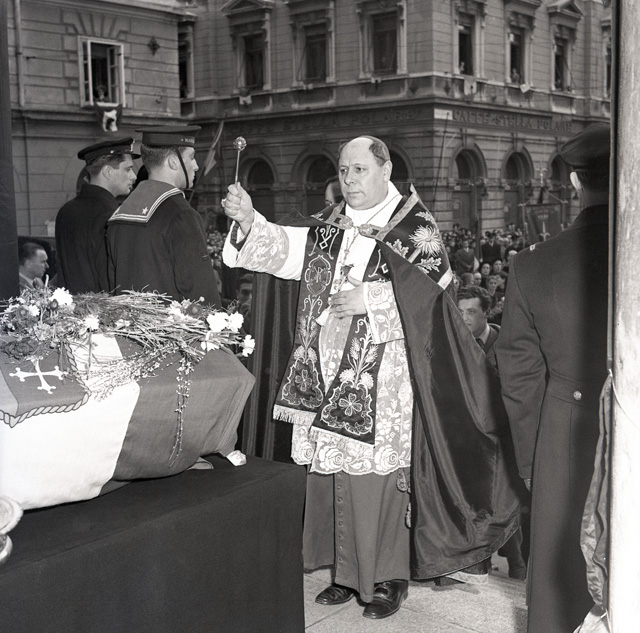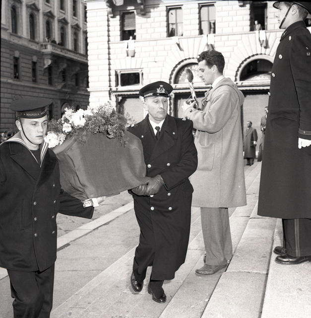 Cerimonia funebre per le salme dei cinque marinai della nave da guerra Berenice affondata il 9 settembre 1943 dalle truppe tedesche nel golfo di Trieste, e recuperate nei mesi di gennaio e febbraio del 1951