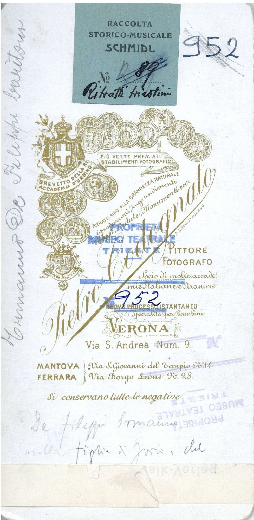 Proprietà Ente pubblico territoriale; Civico museo teatrale C. Schmidl