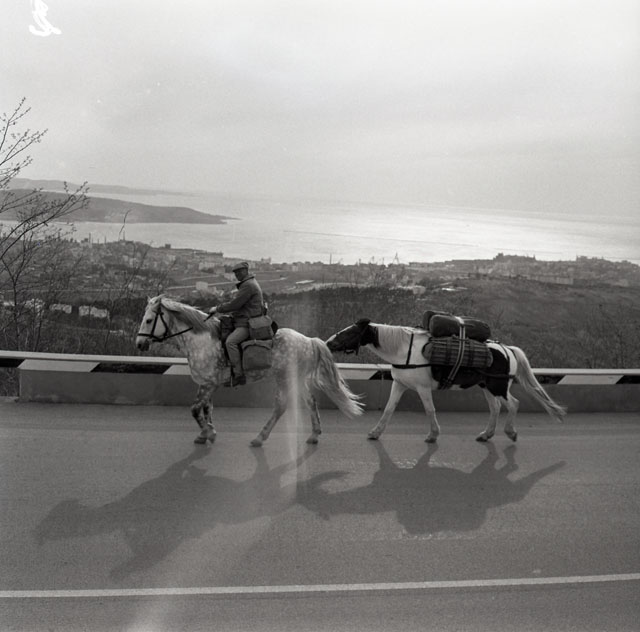 Il colonnello inglese della Royal Air Force, in sella a un magnifico cavallo bianco, giunge a Trieste dall'Inghilterra, intenzionato a raggiungere la Nuova Zelanda.