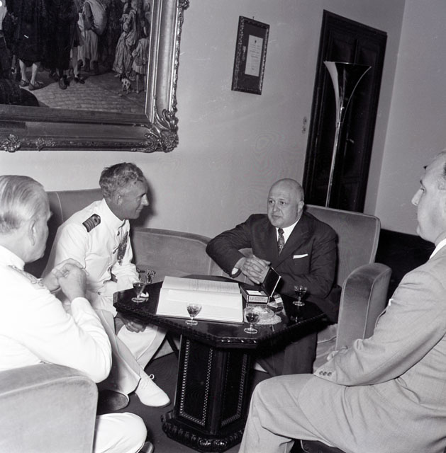 Giungono a Trieste l'incrociatore Gambia, i cacciatorpediniere Dainty e Delight. Il capitano di vascello W. J. Munn saluta il sindaco Franzil accompagnato dal console inglese Neville Terry.