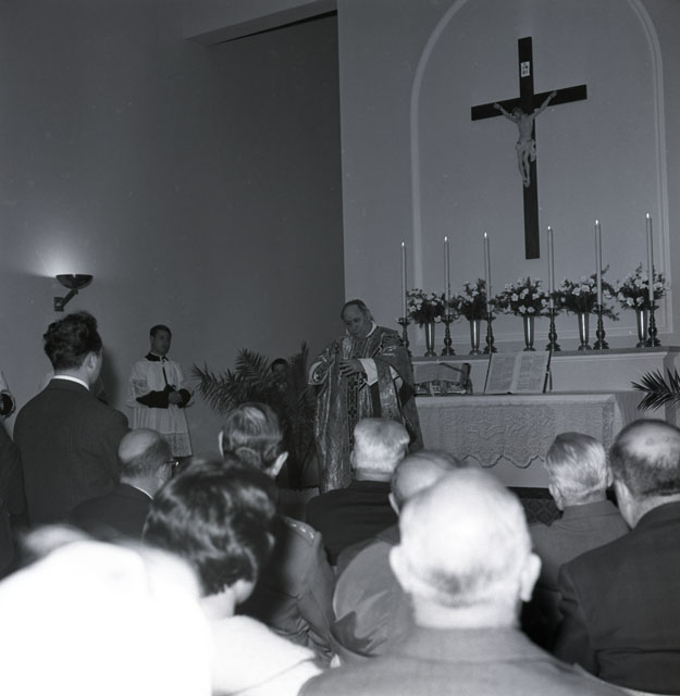 La Cappella, creata utilizzando una parte del capannone 55 del Porto Duca d'Aosta e dedicata a Sant'Andrea è stata inaugurata e benedetta oggi da Mons. Santin. Da Il Piccolo 24.10.1959