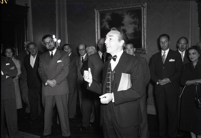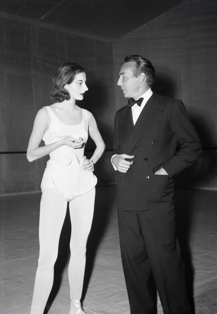 Il lago dei Cigni con la coreografia di George Balanchine e le scene e i costumi di Cecil Beaton viene proposto al Teatro Verdi il 22 e il 23 ottobre 1953. Il coreografo con il corpo di ballo viene ricevuto in Municipio dal sindaco Bartoli. Nella compagnia danzano la grande ballerina statunitense Maria Tallchief, sposata da Balanchine nel 1946 ma da cui divorzia nel 1952 e la quarta e ultima moglie del coreografo, Tanaquil Le Clercq, figlia dell'intellettuale francese Jacques Le Clercq che la chiama Tanaquil, in onore della regina etrusca, moglie di Tarquinio Prisco, V re di Roma. Nel 1944, quando aveva 15 anni, George Balanchine le chiede di esibirsi con lui in una manifestazione di beneficenza per la poliomielite, presso l’hotel Waldorf Astoria a New York City. In un presagio inquietante, George Balanchine interpreta un personaggio di nome Polio, di cui Tanaquil LeClercq era la vittima. Polio, avvolgeva la vittima in un mantello nero, facendola cadere a terra malata. Nell’autunno del 1956, il New York City Ballet programma un viaggio in Europa per un tour di 10 settimane. Durante il soggiorno a Copenaghen, l’1 novembre 1956, si ammala di poliomelite: resterà paralizzata. Riconquisterà l’uso delle braccia e del tronco. Diventerà un'ottima insegnante di danza, “usando le mani e le braccia al posto delle gambe e dei piedi “, seduta sulla sua sedia a rotelle. Il servizio fotografico di Adriano de Rota descrive il ricevimento in Municipio e le prove dello spettacolo al Teatro Verdi.