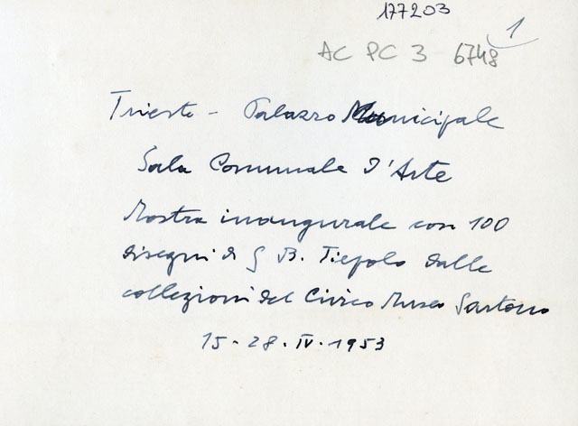 HomeTrieste : Palazzo Municipale Sala Comunale d'Arte. Mostra inaugurale con 100 disegni di G. B. Tiepolo dalle collezioni del Civico Museo Sartorio, 15 - 28. IV.1953