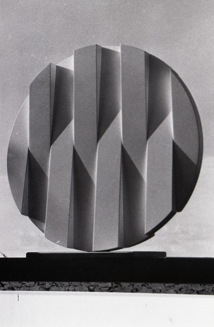 Nino Perizi realizza la “Ruota solare”, in cemento bianco, alta 4 metri. Nino Perizi vince il bando destinato al Centro sportivo. L'opera si trova presso la Strada Provinciale del Carso.
