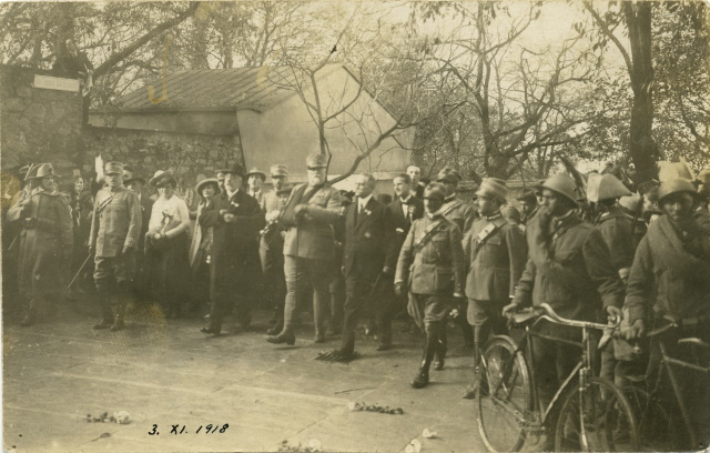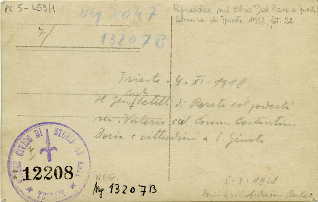 Il gen. Carlo Petitti di Roreto col podestà sen. Valerio e il comm. Costantino Doria e cittadini a S. Giusto : Trieste 4 novembre 1918