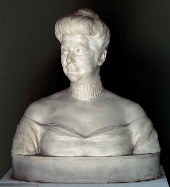 Nove anni dopo l’ingresso in Museo del primo busto marmoreo di Pietro Canonica intitolato Sogno di Primavera, opera di grande pregio e determinante importanza nell’ambito delle acquisizioni effettuate dal Curatorio alle esposizioni Biennali veneziane, a cavallo dei due secoli, viene offerta in dono un’ulteriore opera dello scultore torinese, il ritratto in marmo della baronessa de Reinelt, esposta nella Sala XXXV nell’ambito della Mostra Nazionale di Belle Arti di Milano del 1906, la grande esposizione che celebrava l’apertura del nuovo valico del Sempione. Le pratiche per la spedizione dell’opera, donata al Museo dalla baronessa stessa, furono avviate subito dopo la chiusura dell’esposizione milanese, nel novembre del 1906. Il busto fu definitivamente accolto al Museo nel gennaio del 1907. Artefice nel corso dello stesso anno di una seconda importante donazione, il dipinto intitolato Messa bassa dell’artista belga Alfred Delaunois, Angela de Reinelt, che al Museo Revoltella cederà successivamente altre tre opere (Prece umile dello scultore Vittorino Meneghello, Ore serene di Guglielmo Ciardi, e Sull’isola sacra di Giulio Aristide Sartorio, pervenute al Museo tra il 1909 e il 1914), fu donna di grande cultura e generosità, sposata al barone Carlo de Reinelt, personaggio di spicco nella Trieste della seconda metà dell’Ottocento e Presidente della Società per l’Arte e l’Industria.