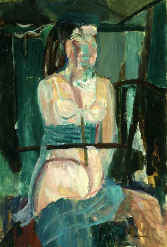 Il "Nudo di donna" di Cassinari fu esposto per la prima volta nel 1948 alla Biennale di Venezia, che riapriva dopo sei anni di sospensione dovuti alla guerra. Cassinari era fra gli artisti invitati ed espose nove lavori del periodo 1942-48. Fu in quest'occasione che il Curatorio del Museo Revoltella decise di acquistare il dipinto in esame. Grazie alle trattative intercorse tra l'autore e Sbisà, il prezzo richiesto alla Biennale passò da 80.000 lire a 50.000 lire. Cassinari la dipinse in una fase molto importante del suo percorso artistico: dopo aver fatto parte del movimento di Corrente (1939-42), nel 1946 aveva aderito alla Nuova Secessione Artistica Italiana, ma se n'era allontanato già l'anno successivo, quando si era trasformata nel Fronte Nuovo delle Arti. Nel 1947 si era recato a Parigi con Birolli, Morosini e Treccani, e aveva vissuto l'impatto diretto con le opere di Picasso. A questa esperienza si era aggiunta, nel 1948, la visita alla grande mostra antologica di Rouault alla Kunsthaus di Zurigo, che aveva lasciato un'impronta evidente nelle sue icone femminili di quegli anni. Nella sua complessa cultura figurativa, le cui radici affondano nel romanico emiliano della sua terra d'origine, questi modelli convivono con l'amore per Modigliani, spesso citato in certe figure femminili dal collo lungo (come "Bianca" del '46 e "Lauretta" del '47) e per Marino Marini, al quale rimandano i volumi semplificati e monumentali, nonchè i segni incisivi che sfigurano le fisionomie dei volti. Queste "ferite", molto evidenti anche nel dipinto del Revoltella, sono "tatuaggi di stile, un incidere cioè sul tessuto vivo dell'immagine plastica quasi un grafico, una cifra interiore: sono ganci, graffi lanciati verso un'espressione ignota " (SCIALOJA 1949, n. 12, p. 20). Nell'opera in esame ritorna uno dei temi preferiti dell'autore: il nudo, che egli sublima in "idolo archetipo della sensualità, dell'eros, della vitalità generante, nel quale ogni immagine della accidentalità d'esperienza si costituisce in distaccata e quasi solenne evidenza simbolica" ("Cassinari" 1986, p. 35). I nudi, particolarmente frequenti nella produzione del secondo dopoguerra, si fanno sempre più semplificati, talvolta mutili, a rappresentare "il grave affacciarsi di un'umanità franta e ferma, ostinata a riaffiorare il suo volto traverso il flagello delle ceneri, degli anni, degli schemi astratti come griglie di tortura" ("Cassinari" 1986, p. 130).