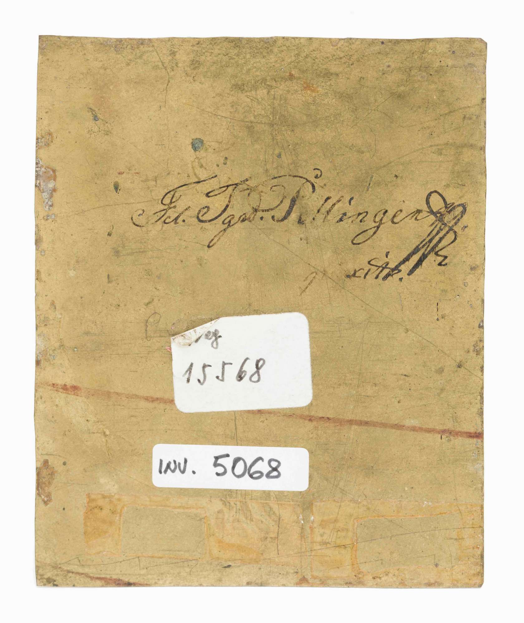 Il ritratto in miniatura, assai compromesso, riproduce un uomo a mezzo busto che regge un libro in mano. Un’iscrizione, vergata a tergo dell’effigie, attribuisce il dipintino a un non meglio identificato Fel. Igrd. Pellingen, prozio di origine boema della donatrice Ottilia Dugani Luft, come riporta una precedente scheda inventariale.