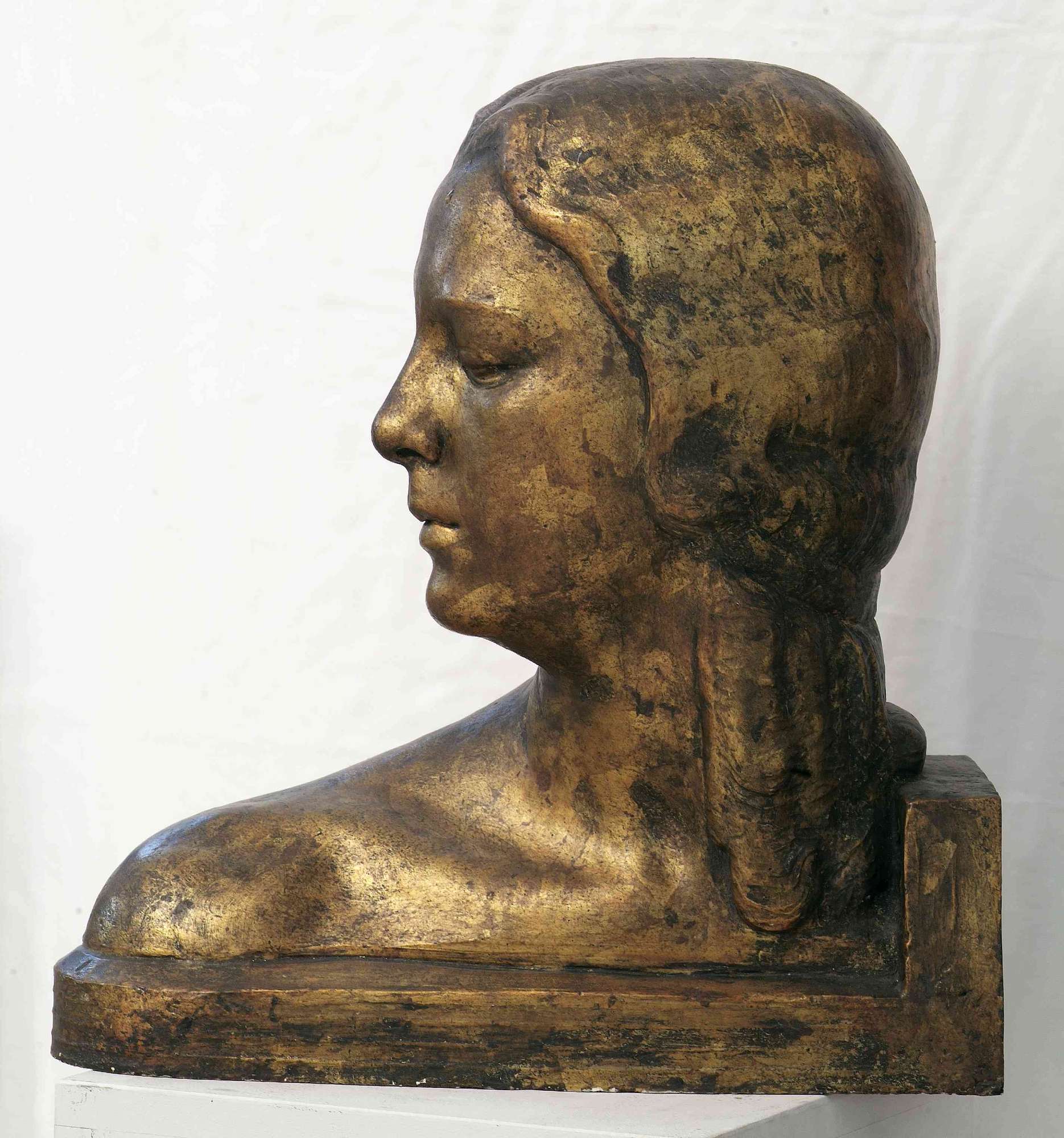 Firmato in basso a destra «Atschko», il gesso è uno degli ultimi lavori firmati dallo scultore con il cognome originario, poi modificato in Asco. Per quest’opera l’artista adotta una soluzione originale con il volto posto di profilo, i capelli raccolti, occhi e bocca chiusi. Lo stile proposto per questo gesso colorato rimanda nella scelta del taglio a un altro lavoro di qualche anno precedente, ancora una testa di donna (collezione privata), caratterizzata da un profilo preciso che sembra quasi innestarsi su un torso che funge da basamento. Di quest’opera esistono più versioni, come documentano alcune testimonianze fotografiche. Il gesso colorato, originale anche per la scelta cromatica, è giunto in museo attraverso il lascito delle opere di Ruggero Rovan, scultore triestino che di certo conobbe Asco. Forse fu anche suo maestro negli anni tra il 1916 e il 1919, in cui insegnò presso l’Istituto dei Poveri. I due scultori ebbero modo probabilmente di frequentarsi anche negli anni successivi, quando frequentarono il Caffè Garibaldi, punto di riferimento per intere generazioni di artisti triestini. Assieme all’opera di Asco è presente nelle collezioni del museo un consistente nucleo di opere dello scultore Rovan, giunte con le stesse modalità. Inoltre vi sono un’interessante raccolta di disegni dello stesso artista e alcune opere di altri pittori attivi a Trieste nel corso della prima metà del Novecento, a testimonianza dei vivi rapporti di amicizia stabilitisi nel mondo culturale locale.