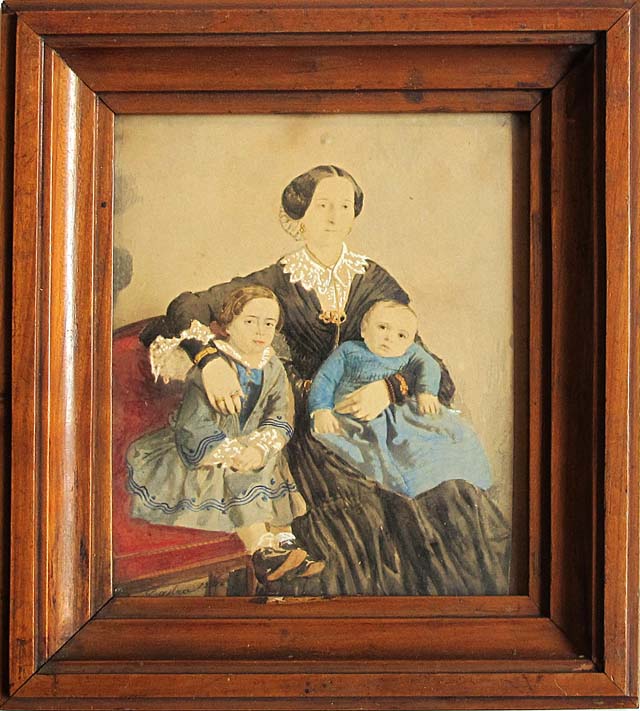 Secondo quanto riportato al momento dell'acquisto (Registro Acquisti 1902-1938), nel 1923, il ritratto in miniatura riproduce le effigi della famiglia dell'avvocato Valentini Majorana (o Mazorana). L’opera, datata e firmata, è ascrivibile al pittore, miniaturista e fotografo Andrea de Castro (Pirano, 1806-Trieste, 1884), celebre per aver ritratto la nobiltà e la classe borghese triestina nel XIX secolo. Non si esclude che alla base di questo ritratto vi sia un prototipo fotografico.