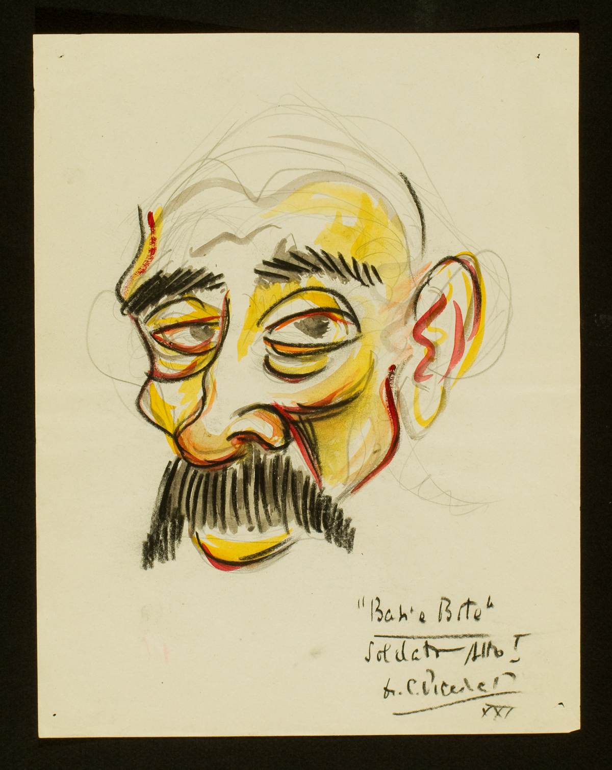 Basi e bote, opera di Riccardo Pick-Mangiagalli. Ritratto caricaturale di soldato, atto 1.