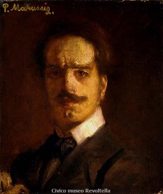 Raro "gioiello" della primissima produzione pittorica di Piero Marussig, il piccolo olio del 1895 è probabilmente il primo autoritratto dell'artista triestino, che ne realizzò parecchi, raffigurandosi a tutte le età. Tra questi troviamo alcune delle sue opere migliori. Eseguito quando il pittore era ancora adolescente, il dipinto presenta caratteri stilistici affini a quelli della coeva produzione ritrattistica dell'autore. Come nel Ritratto della sorella Eugenia, eseguito a pastello nel 1898, anche qui riscontriamo "quella tendenza alla semplificazione dei piani, a risolverli per via di luce "sul piatto" della superficie pittorica che diverrà poi un suo ben preciso carattere linguistico, così come quella luminosità intensa e ambrata (come da riflessi di lampada) delle zone plastiche del quadro" (G. Maschera, Piero Marussig, 1987) elementi che documentano l’attenzione di Marussig per la pittura dei suoi contemporanei, in particolare per coloro che in quegli anni rientravano a Trieste da Monaco e da Vienna. Seguendo a sua volta il percorso formativo divenuto quasi obbligato per i triestini dell’ultimo Ottocento, egli intraprese la strada per Vienna nel 1899, un anno dopo aver realizzato un altro autoritratto a china (Piero Marussig, 1987, n.82), simile, per posa ed espressione, a quello del Museo Revoltella. Quarto di cinque figli, Marussig era nato in una famiglia agiata della borghesia commerciale triestina. La sua prima formazione artistica era avvenuta sotto la guida di Eugenio Scomparini alla Scuola Industriale di Trieste. Le sue prove pittoriche avevano risentito della lezione del verismo, unita al tentativo di affinare la ricerca psicologica sul soggetto. [Bressan 2005]