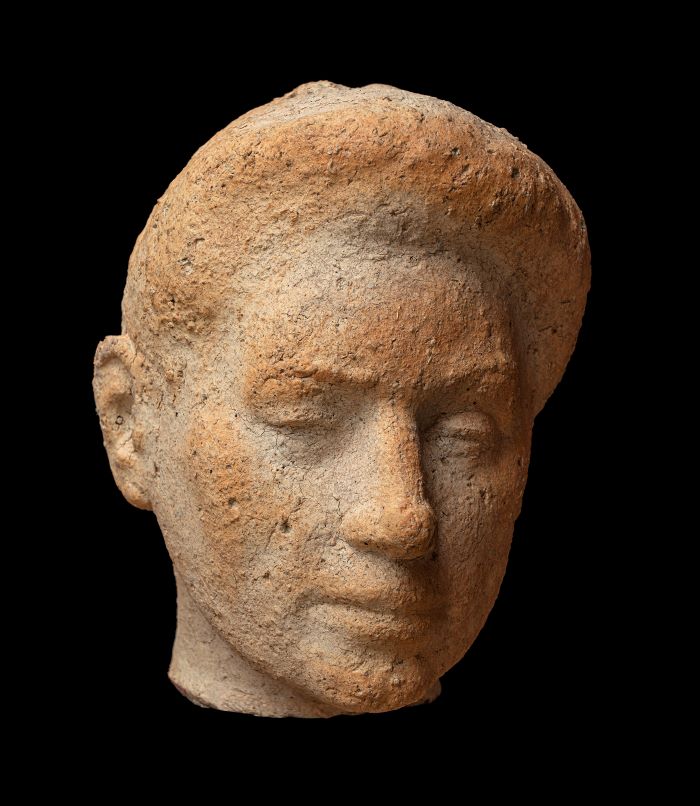 La scultura, che ritrae Anita Pittoni (1901-1982), appartiene alla serie di opere realizzate da Sbisà in materiali diversi, dedicati ad amici di famiglia, che facevano parte di un circolo di artisti e intellettuali attivi nella Trieste del dopoguerra. Le otto sculture sono la testimonianza della sua svolta artistica, dopo che nel secondo dopoguerra iniziò a lavorare con continuità la terracotta e la ceramica, con la quale si era cimentato già a Firenze negli anni Venti. In seguito, assieme alla moglie Mirella Schott Sbisà creò il marchio CSM, la cui produzione ottenne molto successo: esposero alle Biennali veneziane dal 1948 al 1964. Di Anita Pittoni è noto che si affermò soprattutto nell’ambito dell’arredamento e della moda e partecipò alle Biennali di Venezia e a diverse Triennali di Milano. Si dedicò anche alla poesia e fondò la casa editrice Lo Zibaldone nel 1949 assieme a Giani Stuparich. La scultura che la ritrae fu realizzata nel 1946 assieme a quella raffigurante Romeo Daneo, che riporta le stesse bruciature rossastre. L’artista triestino Romeo Danéo (1901-1979) si dedicò alla pittura e all’incisione xilografica e fu presente alle Biennali di Venezia del 1948, 1950, 1952, nonché a varie edizioni della Quadriennale romana. Nel 1949 collaborò con Sbisà, Ugo Carà e Marcello Mascherini alla decorazione della Motonave “Conte Biancamano”. Sotto la base dell’opera è stato riportato quanto lo stesso Sbisà aveva scritto su di un talloncino: «Carlo Sbisà, via Ruggero Manna, Trieste, ritratto del pittore Romeo Daneo» e poi il prezzo dell’opera «Lire 35.000». Del ritratto di Ida Marin (1922-2021), nipote del poeta Biagio Marin, esiste anche una copia in bronzo. La scultura, esposta alla galleria San Giusto a Trieste nel 1947, riscosse un notevole successo di critica. Federico Righi scrisse sul «Giornale di Trieste» del 23 novembre 1947 che le sculture «hanno finezza di modellato non comune e rivelano in questo infaticabile artista un’abilità di mestiere e una preparazione degna del più alto riconoscimento». È del 1950 la terracotta che ritrae il musicista e compositore piemontese Giorgio Federico Ghedini (1892-1965), che svolse l’attività di docente a Torino e presso i Conservatori di Parma e di Milano, dove fu direttore. Ghedini compose per il “Trio di Trieste”, formato dal violinista Renato Zanettovich, il violoncellista Libero Lana e il pianista Dario De Rosa. Sarà proprio la famiglia Zanettovich a fare incontrare il compositore e Carlo Sbisà.