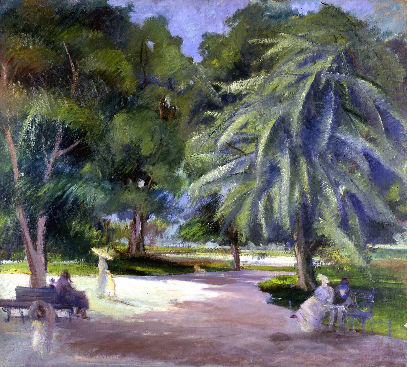 “Questo dipinto, pregevole per la sua struttura densa, spaziosa e luminosa, è opera autentica di Armando Spadini. La sua esecuzione, da situarsi intorno al 1910, risponde ai caratteri che distinguono la seconda maniera del pittore, elaborata tra la fine del periodo fiorentino e il principio del periodo romano con le sue nuove esperienze pittoriche. Per questo, sotto il rapporto tecnico, esso costituisce un'espressione relativamente inconsueta e singolare nella serie dei paesaggi spadiniani.” Con queste parole si esprime Enrico Somarè, nel maggio del 1940, riguardo al dipinto dell'artista toscano pervenuto al Museo Revoltella l'anno seguente, con permuta mediata dalla Galleria Trieste. La lettera di autentica del Professor Somarè, conservata presso l'archivio del Museo, 30 gennaio 1941, individua negli anni intorno al 1910 (anno di insediamento di Spadini a Roma) il periodo probabile di esecuzione del dipinto Il Pincio, anche se, è abbastanza certo, che il cosiddetto ciclo delle vedute di Villa Borghese e del Pincio fu realizzato, più esattamente, tra il 1913 e il 1915. Il 1913, momento cruciale per l'evoluzione del linguaggio pittorico di Spadini, è l'anno della sua partecipazione alla prima Secessione romana e dell'impatto diretto con le opere della pittura impressionista, in quella occasione presente con un'ampia scelta di opere accanto ai maggiori esponenti della pittura fauve. “L'impatto è assai forte ed egli pur dipingendo in quell'anno alcune delle più belle e note vedute di villa Borghese, si trova costretto, dalle esperienze fatte, a ripensare a tutto il suo modo di fare pittura.” (P. Rosazza Ferraris, 1983). Più tardi, in una lettera indirizzata ad Ugo Ojetti (1919), l'artista disconoscerà quel che egli definiva “mezzo periodo di impressionismo” e che, tuttavia, caratterizza con evidenza tutta la sua produzione tra il 1913 e il 1917. Scrive ancora Corrado Pavolini nel 1930: “Se si riflette che, per motivi di tempi, l'«avventura» tecnica di Spadini è l'impressionismo, l'accento di queste tele non può mancar di profondamente stupire: tanto vi traspare, al di là dell'attenzione cromatica data alle apparenze dell'ora, la ben più profonda preoccupazione di mantenere alla veduta l'augusto disteso respiro delle sue masse grandiose […]” Analogamente, nella veduta del Museo Revoltella, le “masse grandiose” degli alberi mantengono la loro fiera solidità grazie ad una stesura pittorica “densa e rilevata”, che sovrasta le figure sottostanti appena sbozzate, colte ciascuna nelle diverse gradazioni di una discreta luminosità. Oltre al dipinto Il Pincio, concesso in prestito alla Gemäldegalerie di Vienna nel 1964 per una mostra sui giardini e parchi nelle rappresentazioni pittoriche (Verbale del Curatorio, 26 maggio 1964), un'ulteriore opera di Spadini (mai pervenuta nelle collezioni museali) era stata sottoposta all'attenzione di Edgardo Sambo nel 1931, allora Direttore del Museo Revoltella: un Paesaggio con tre alberi in primo piano, pubblicato nella monografia di Adolfo Venturi (cat. N. 402) e già proprietà del senatore Malagodi (archivio del Museo Revoltella, lettera di Virginia Guglielmi del 22 giugno 1931), di cui il Museo possiede la sola riproduzione fotografica in bianco e nero.