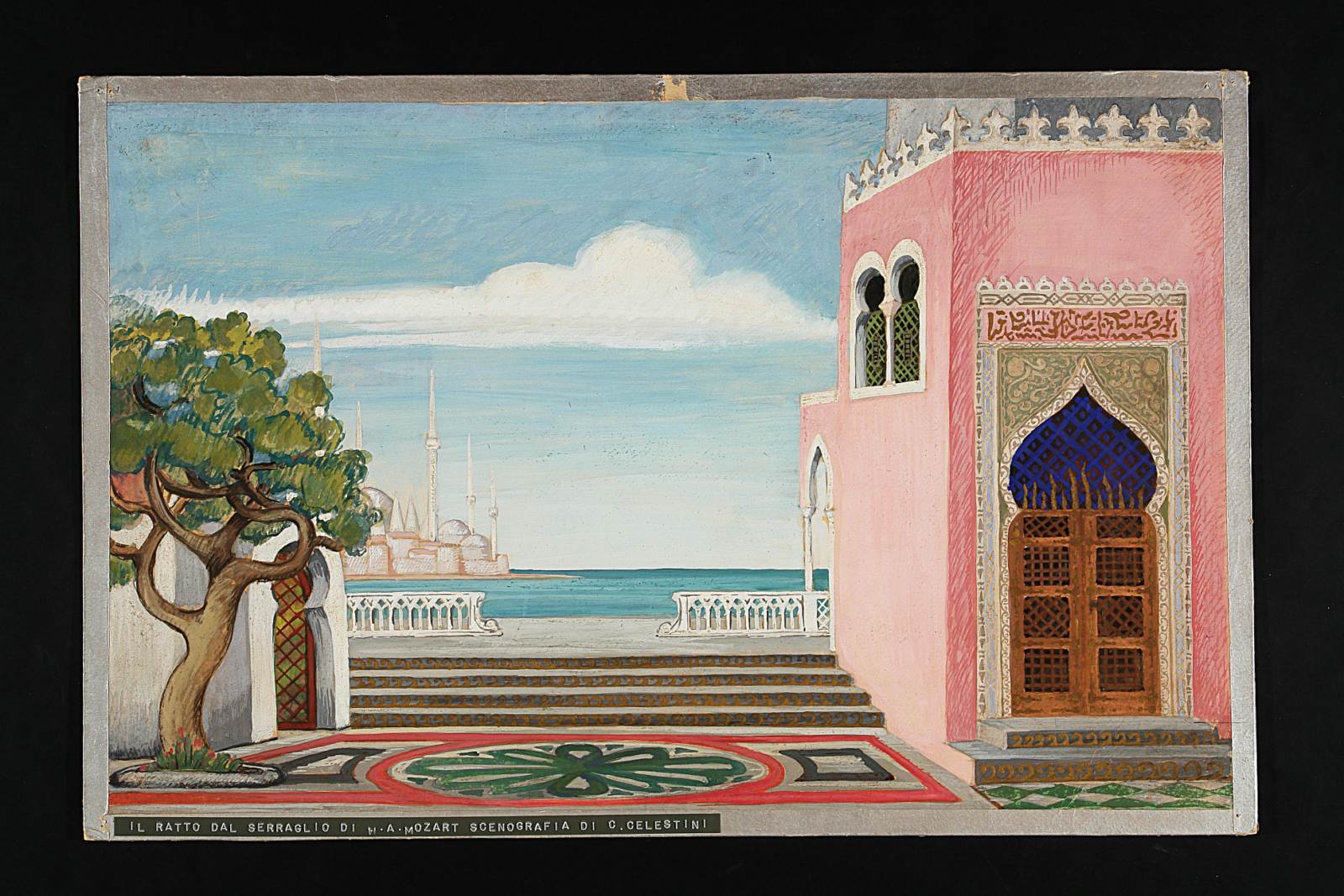 Il ratto dal serraglio di Wolfgang Amadeus Mozart. Palazzo del Pascià Selim con scorcio di mare e veduta di una casa turca