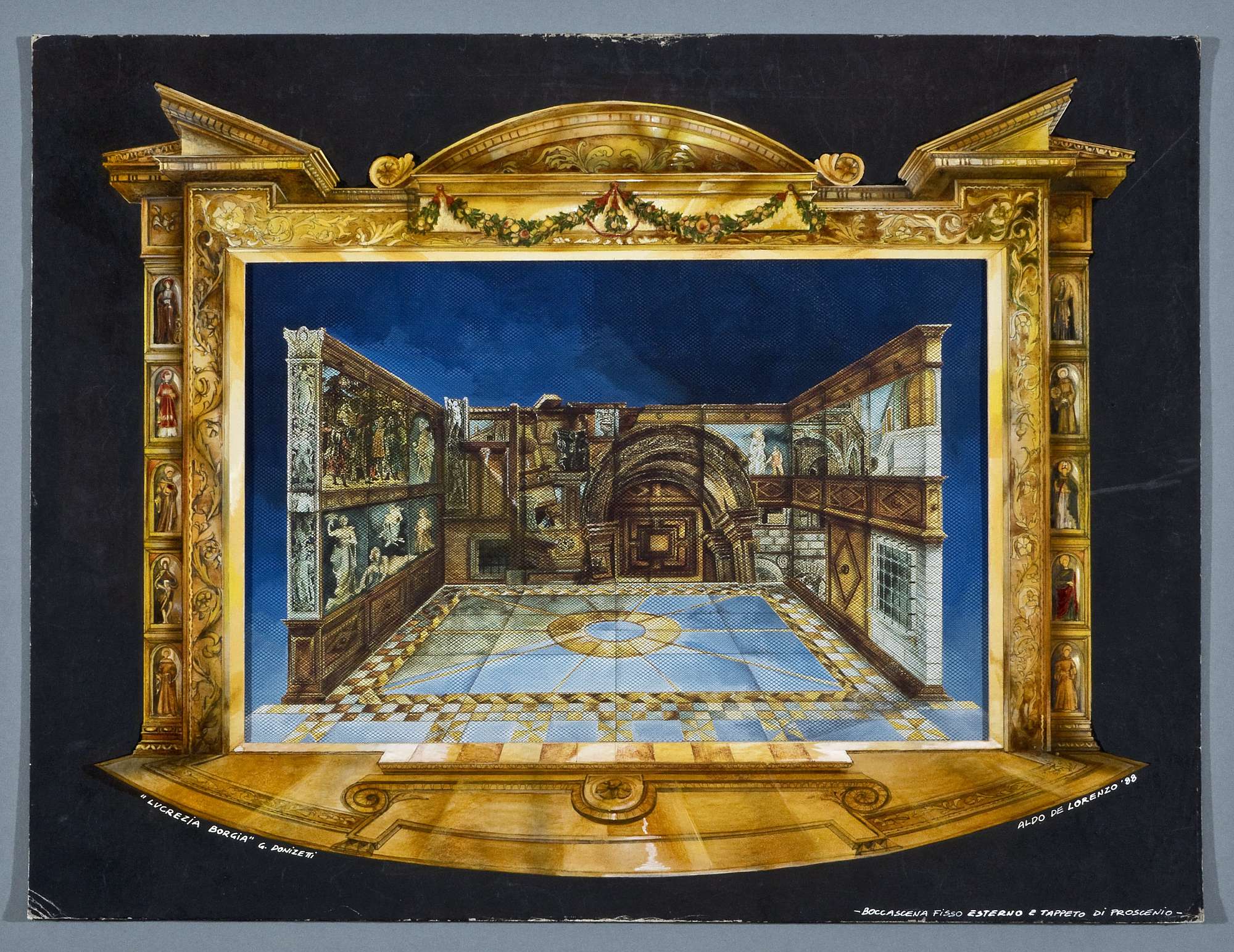 Lucrezia Borgia, di Gaetano Donizetti, boccascena fisso esterno e tappeto di proscenio