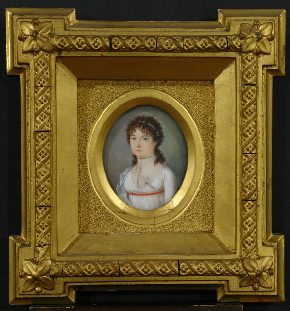 La miniatura offre l’immagine di Elisabetta Reisden (1757-1830), moglie di Federico Reisden e trisnonna di Odinea Opuich, che ha legato l’opera ai Civici Musei di Storia ed Arte. Di Elisabetta Reisden si conservano altri ritratti in miniatura, cfr. invv. 18031, 18037.