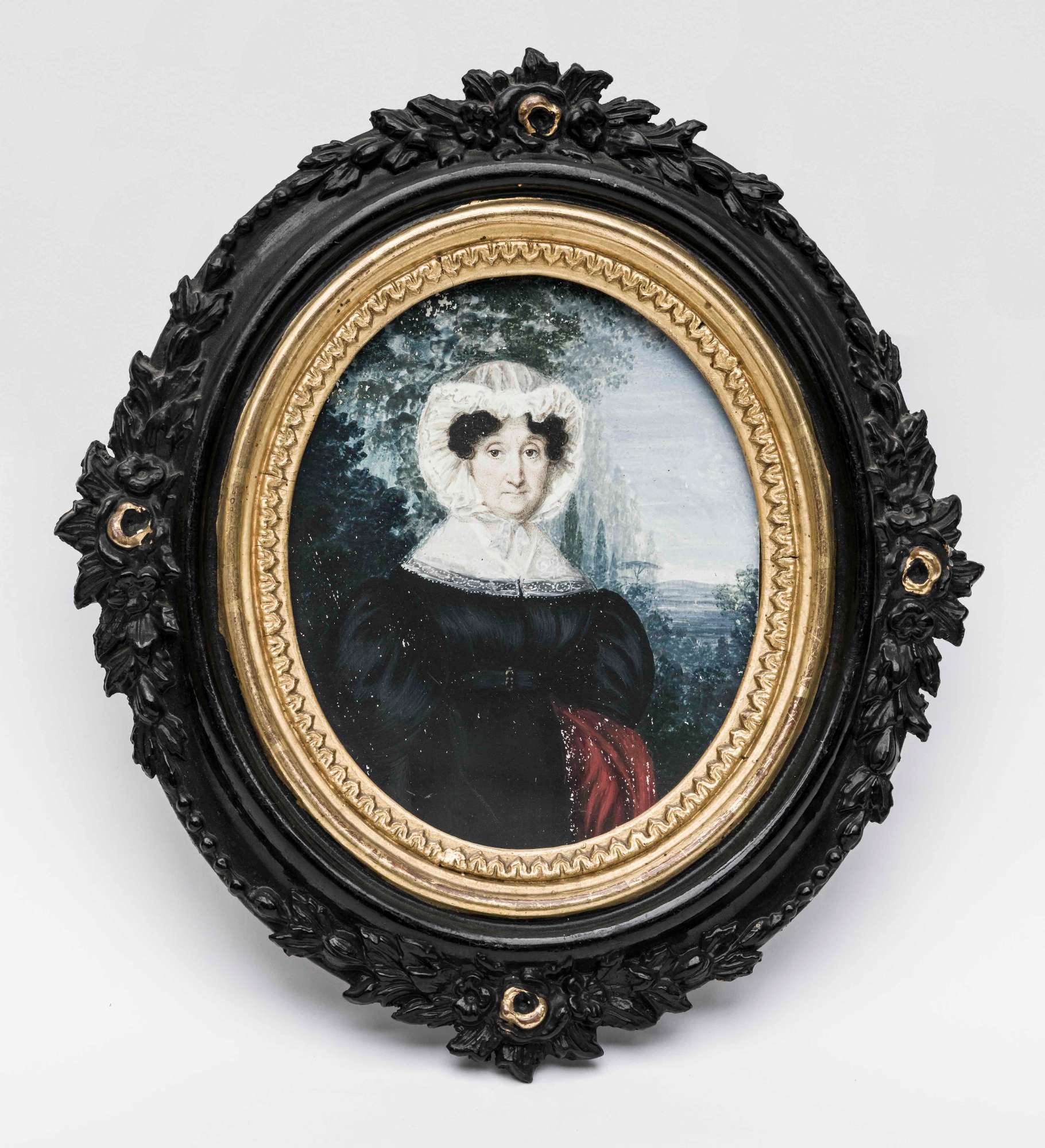 Ritratto femminile; sullo sfondo, paesaggio.