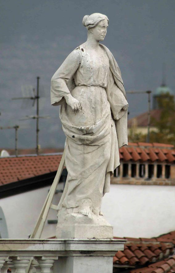 Le sei statue poste a coronamento di Palazzo Revoltella furono completate sicuramente entro il luglio del 1857, quando vengono citate per la prima volta sulla stampa locale. Nel progetto firmato da Friedrich Hitzig per Palazzo Revoltella del 1853 sono previste, sull’attico del fronte principale, sei statue dall’iconografia non chiaramente identificabile (Hitzig 1853), mentre nel medesimo progetto pubblicato in volume, nel 1864 le statue sono quattro e rappresentano le stagioni (Hitzig 1864). La realizzazione finale, affidata a Bosa, si indirizza invece ad una programmatica manifestazione della “morale borghese” di Pasquale Revoltella, in cui vengono celebrati i fattori che concorsero alla sua fortuna: Commercio, Industria, Ingegno e Navigazione sul fronte principale e Calcolo ed Economia sui prospetti laterali (rispettivamente di via Cadorna e via Diaz). L’identificazione di tali allegorie, spesso confuse tra loro nelle schede inventariali del Museo, è possibile grazie a due fogli autografi conservati al Museo Correr di Venezia (inv. cl. III n. 2892 e 2893), nei quali ciascuna allegoria è accompagnata da una didascalia che la identifica. Le sculture, improntate a un diligente classicismo, appaiono estremamente danneggiate dagli agenti atmosferici e mutile di alcuni attributi. Il Commercio ha in capo il petaso alato di Mercurio, ma risulta privo del caduceo (presente nel disegno del Correr), che pare di scorgere nella tempera di Alberto Rieger del 1865 raffigurante Palazzo Revoltella (Possamai 2022, p. 46), l’Industria tiene in mano un alveare (anziché la falce raffigurata nel citato disegno) e un martello, l’Ingegno è caratterizzato da penna (di cui ora è mutilo, ma che è visibile nelle schede inventariali degli anni Sessanta), libro e locomotiva (non prevista nel disegno del Correr), la Navigazione appare mutila degli attributi (previsti dal disegno del Correr) della bussola, visibile ancora nelle schede inventariali degli anni Sessanta, e dell’àncora, che si scorge ancora fino al 1913 circa in una foto di Francesco Penco. Sui prospetti laterali sono posti il Calcolo, che srotola un cartiglio, e l’Economia, che regge una borsa piena di denari. Si segnala che nella Rassegna di pittura e scultura dell'Ottocento a Trieste del 1937 è stata esposta una Navigazione di Francesco Bosa di proprietà del Museo Revoltella, di cui si sono perse le tracce. (Rassegna 1937, p.9)