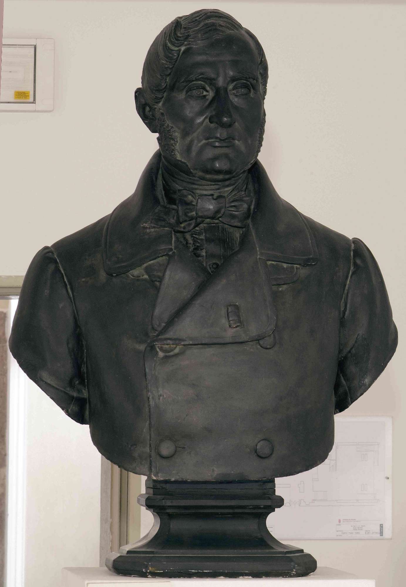 Nel giro di un biennio, al termine dei lavori di edificazione della sua residenza, Pasquale Revoltella commissionava il proprio ritratto, rispettivamente, allo scultore tedesco Karl Cauer ("Ritratto di Pasquale Revoltella", 1858) e all’artista milanese Pietro Magni (il presente ritratto del 1859), al quale il finanziere aveva affidato anche l’esteso apparato decorativo di cui abbiamo più volte parlato. Una scelta che sembra confermare, una volta di più, l’apertura mentale del committente, costantemente rivolto a maestranze di provenienza diversa, nonché la sua ambivalente disposizione, sia nei confronti del suo paese d’origine, l’Italia (appena unificata), sia nei confronti dell’Europa e dei paesi germanici, più in particolare. «Bello di virile bellezza, imponente nella persona, d’ingegno, di modi vivacissimo, allietò la vita sociale di feste brillanti di conviti di piacevoli conversari, nei quali l’eleganza e la squisitezza del porgere, del dire, dell’ospitare andarono in bell’ordine congiunte colla cordialità e la larghezza» («L’Osservatore Triestino» 1869). L’aspetto imponente del soggetto e l’eleganza di portamento e di modi rilevati nel necrologio, pubblicato a due giorni dalla morte del barone Revoltella, sono molto ben rappresentati in questo ritratto scultoreo del Magni. Allievo del rinomato scultore e ritrattista Abbondio Sangiorgio, Pietro Magni fu a sua volta autore di un grande numero di ritratti, per la maggior parte, pare, non più rintracciabili. In questo di Pasquale Revoltella, apparentemente conforme ad una ritrattistica di carattere ufficiale, colpiscono tuttavia alcuni particolari, che fuoriescono dalla rigidità seriale: il papillon in parte occultato dal bavero della finanziera e, soprattutto, l’espressione realistica del volto, vitale e palpitante, pur nell’atteggiamento di una composta autorevolezza. Oltre alla versione in marmo, il Museo Revoltella conserva dello stesso autore una versione in gesso dipinto, acquistata dal Curatorio del Museo nel 1883 dagli eredi dello scultore milanese.