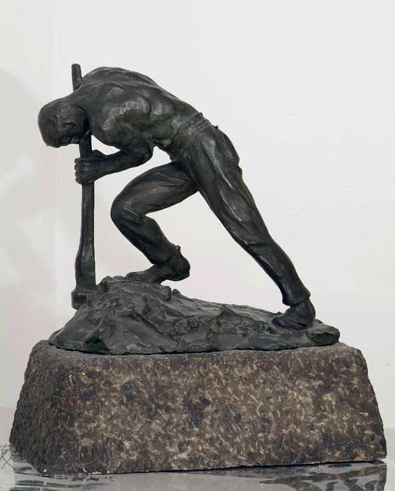 Nel verbale del Curatorio dell’11 febbraio 1935 si fa cenno all’acquisto di quest’opera su proposta dello stesso autore. Il lavoratore si aggiungeva così, per la somma di 3.000 Lire, ad altre due opere di Güttner conservate al Museo Revoltella ("Ritratto del barone Rosario Currò" e "Mio figlio Bruno" ritratto su medaglia bronzea). Vittorio Güttner, che fin dal 1896 si era stabilmente trasferito nella capitale bavarese, si era inizialmente formato presso lo studio del pittore Giuseppe Savorgnani (1881) per poi preferire la scultura, seguendo le lezioni di Francesco Pezzicar (1883), da cui derivò senz’altro la propensione all’interpretazione veristica dei soggetti scolpiti, in linea con la tendenza naturalistica ottocentesca, che caratterizzava l’opera del più anziano maestro triestino. Pressoché coetaneo degli amici artisti concittadini Carlo Wostry, Umberto Veruda e Isidoro Grünhut che, come lui, in quegli anni scelsero l’Accademia di Monaco di Baviera per proseguire la propria formazione, in un ambiente decisamente di più ampio ed aggiornato respiro artistico-culturale, Güttner riflette nel suo linguaggio, divergendo da Pezzicar, le istanze più innovative della ricerca artistica, sviluppatasi tra gli ultimi due decenni dell’Ottocento e l’inizio del nuovo secolo. Nella potente e vigorosa figura dello svangatore, pur di ridotte dimensioni, lo scultore triestino aderisce al filone artistico consacrato al lavoro che, a partire dalla produzione dello scultore belga Costantin Meunier, celebratore del lavoro in diverse forme artistiche fin dagli ultimi decenni dell’Ottocento, divenne soggetto ampiamente e variamente trattato in arte, soprattutto in seguito alla mostra personale dell’artista belga alla Biennale veneziana del 1897. Peraltro, negli stessi anni in cui Güttner probabilmente plasma il suo lavoratore, il brazzanese Alfonso Canciani realizza i "Fonditori" (1907), due raffinati bronzetti anch’essi appartenenti al Museo Revoltella che, a differenza del lavoratore di Güttner dalla superficie vibratile, visibilmente dinamico e concentrato nel suo impeto lavorativo, sono raffigurati in posizione di riposo, autorevoli e dignitosi come divinità moderne, nella superficie levigata della loro agile fisionomia.