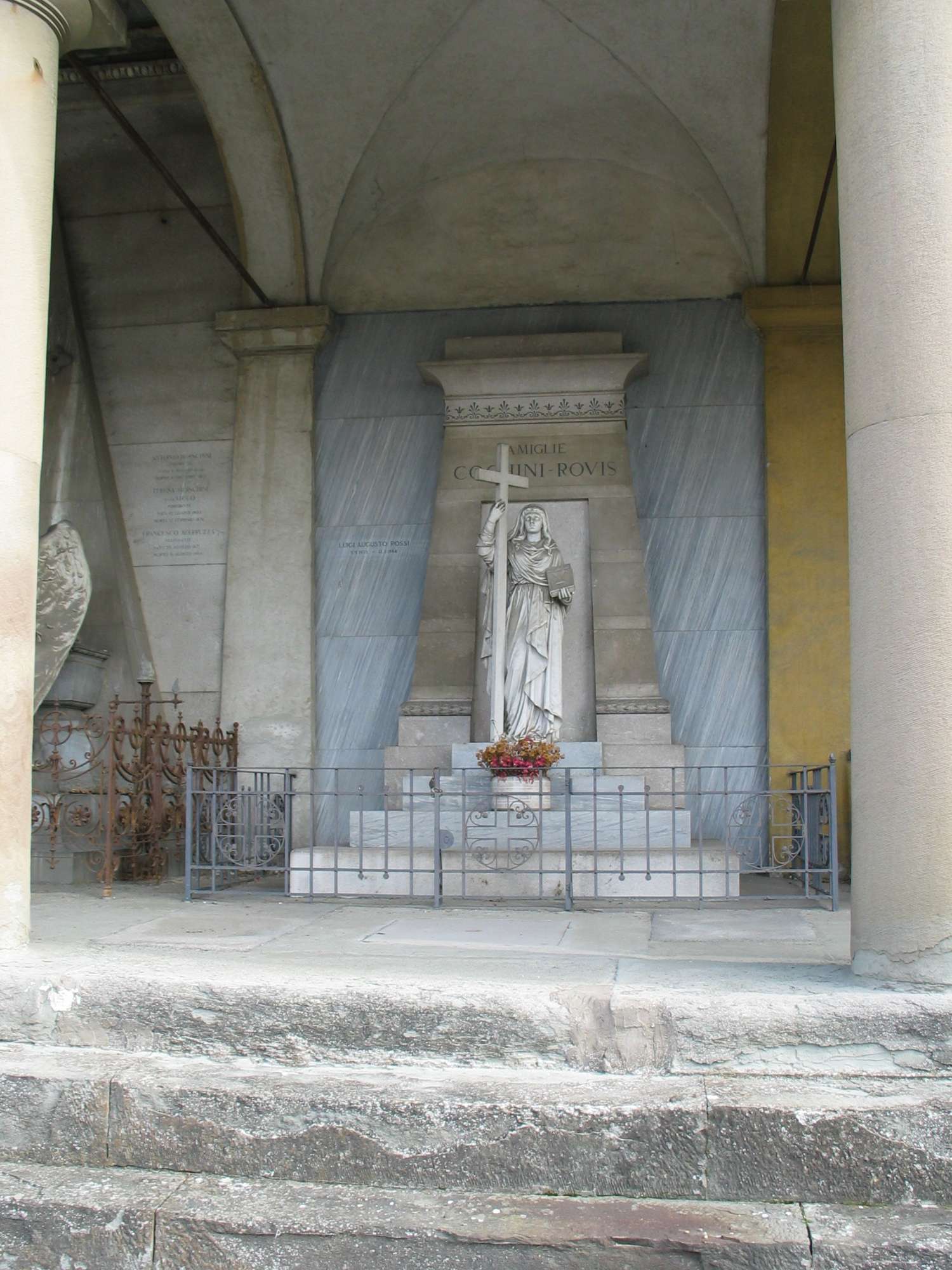 Sopra i gradini che portano all'ingresso del sepolcro è collocata la maestosa figura della Fede, che sorregge con la mano destra un'alta croce, mentre nella sinistra tiene un libro chiuso con la raffigurazione del calice eucaristico sulla copertina.