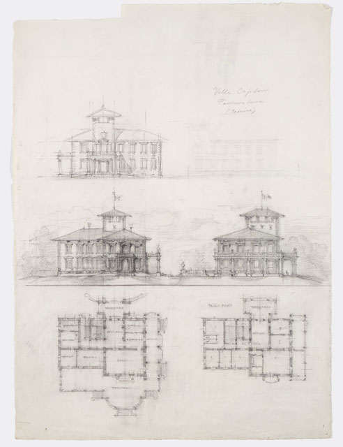 L'iscrizione vergata da mano ignota suggerisce di identificare il disegno quale il progetto di restauro per la villa Capsoni a Fontanabona presso Udine. La critica attribuisce questo progetto incompiuto a Ruggero e Arduino Berlam e lo data al 1917 (Lettis 1996, p. 233; Pozzetto 1999, p. 247).