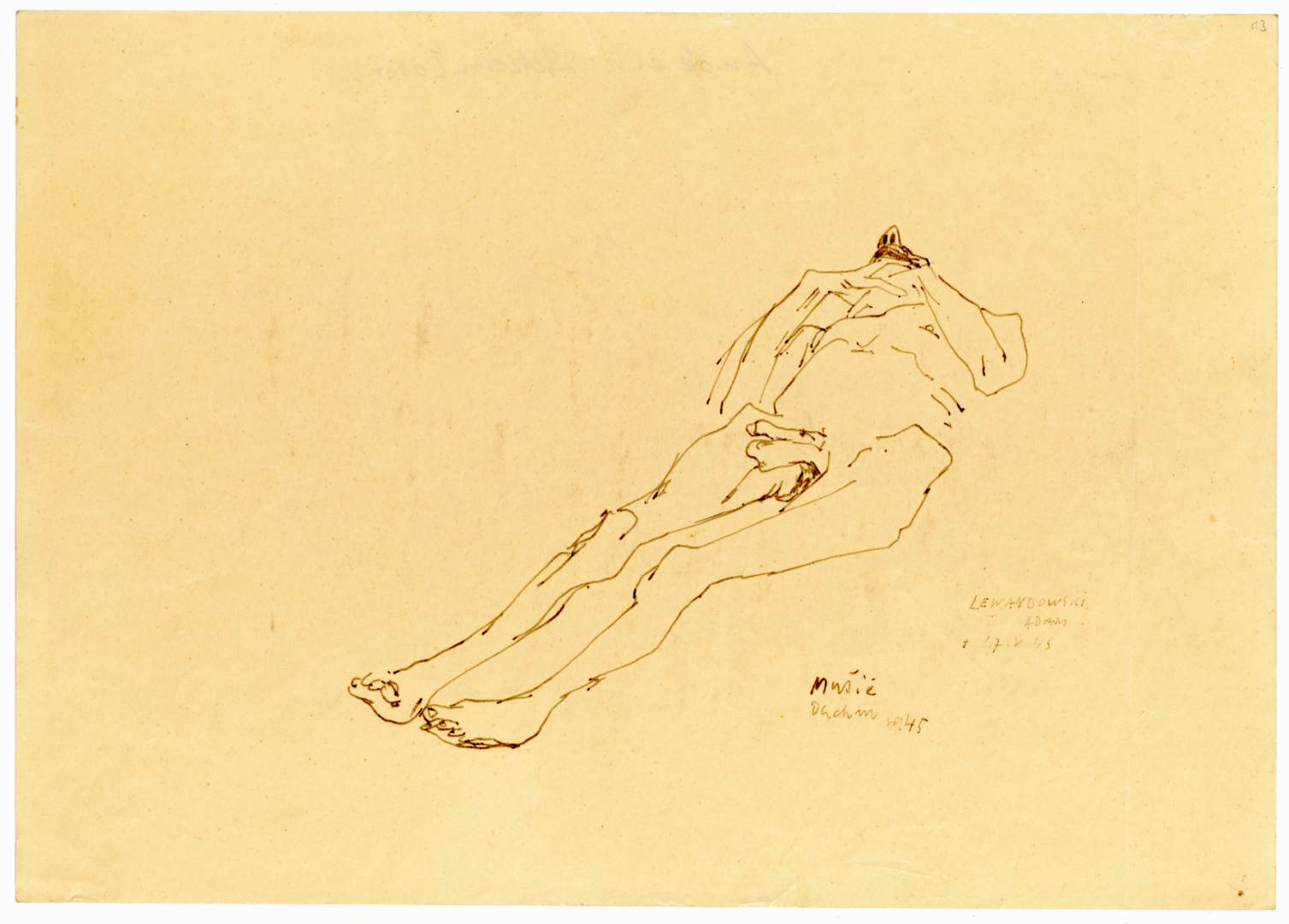 Sul recto è trascritta la firma, il luogo e la data: Mušič Dachau 1945. Sul verso presenta una nota manoscritta a matita “Auch ein Schamloser” (Un altro senza pudore)