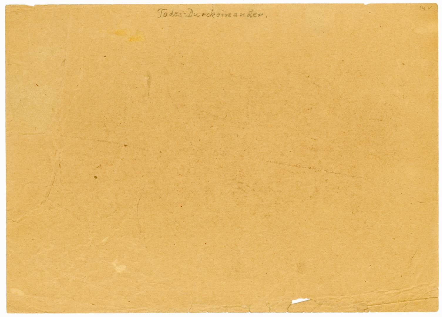 Sul recto è presente la firma, il luogo e la data: Mušič D. 1945 Sul verso vi è una nota manoscritta a matita “Todes – Durcheinander” (Morti alla rinfusa)