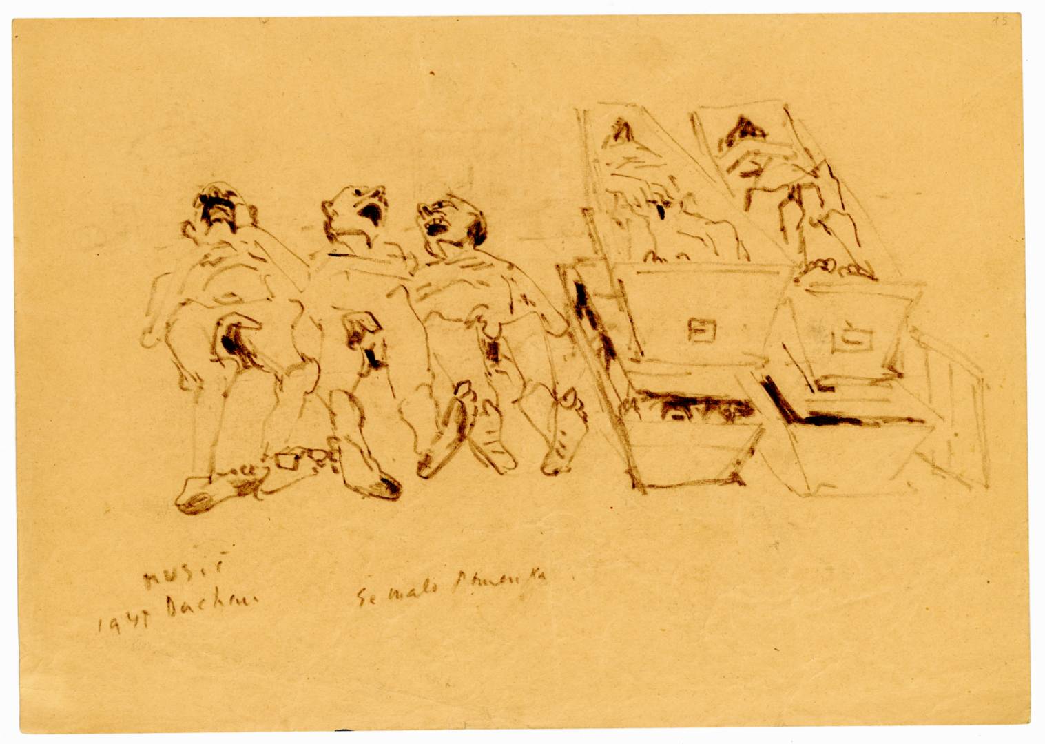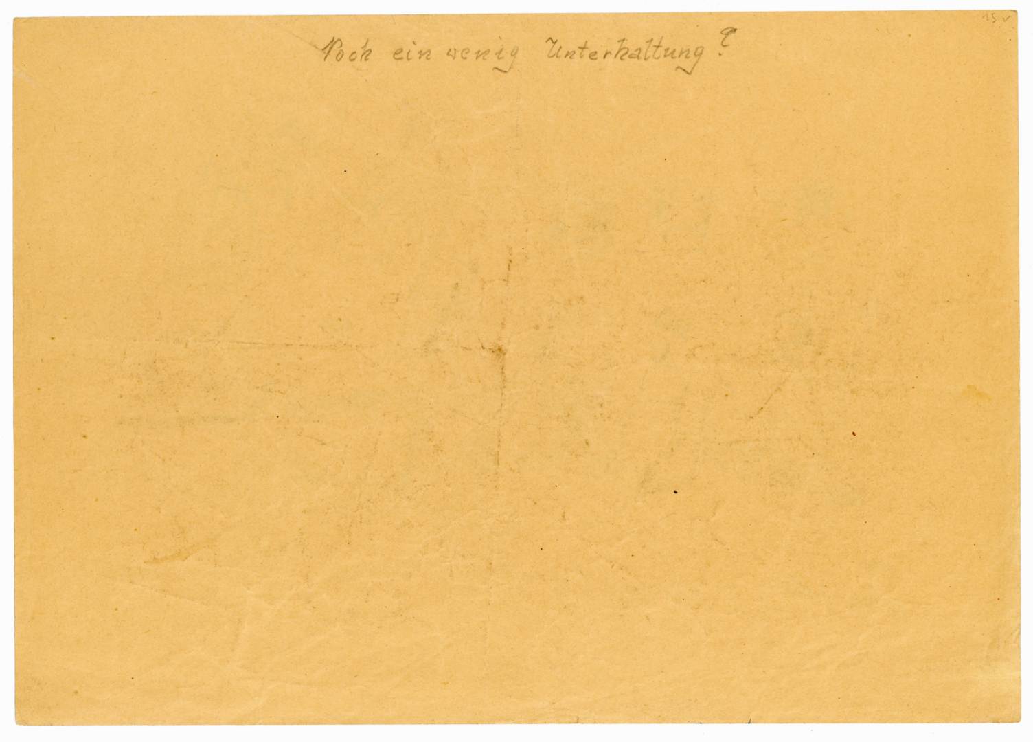 Sul recto è presente la firma, il luogo e la data: Mušič Dachau 1945 Sul verso vi è una nota manoscritta a matita “Noch ein wenig Unterhaltung?” (Ancora un po' di conversazione?)